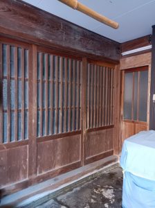 建物奥に残した既存の建具にも洗いをかけ、新しく設置した引き戸の色味と合わせています。