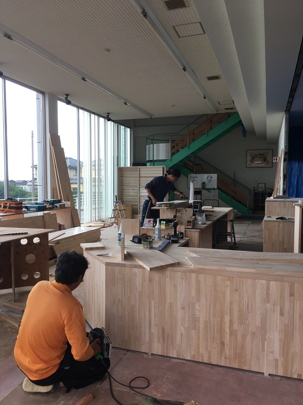接客コーナーにも木でカウンターを作っていきます。