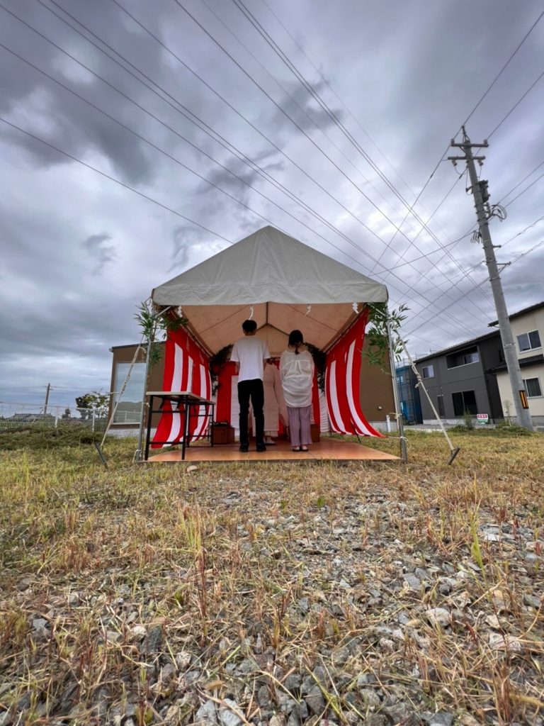 この地の神様に新しく住まいを建築させていただくご報告と工事の安全をお祈りいたしました。