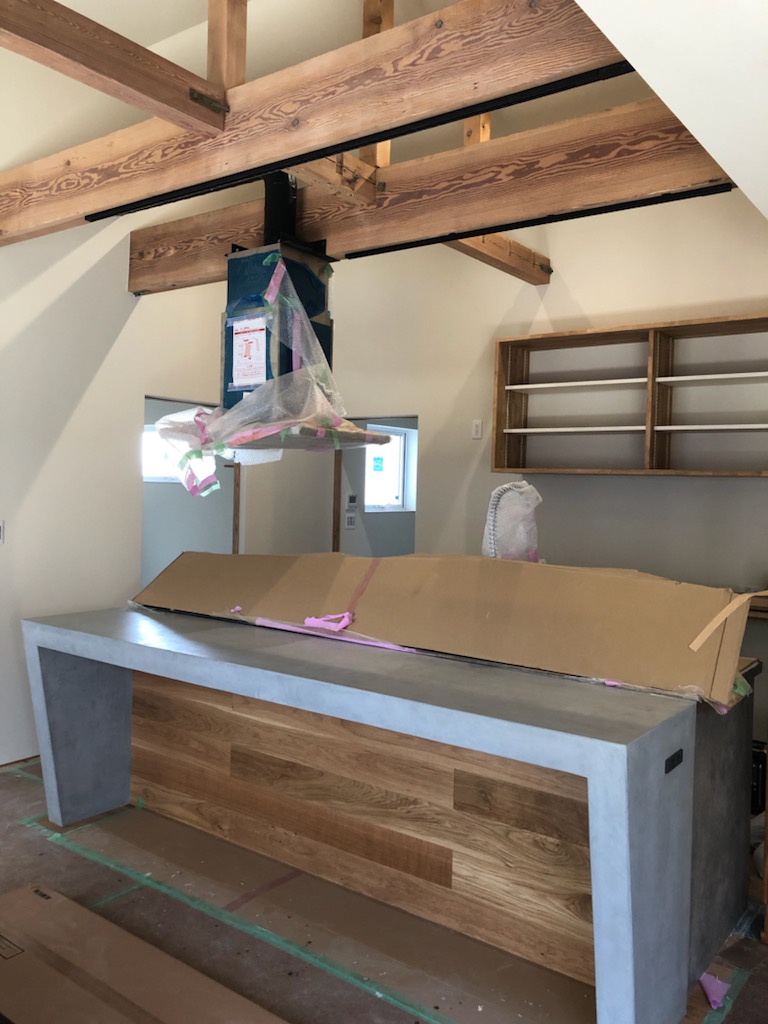 建築昌英ではカウンターや洗面台を左官で仕上げることが多いですがベージュ系は初です。