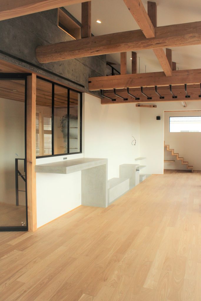 梁をみせた大空間に左官の壁、キッチン、はね出しの階段と、ここでは言い切れないくらいの見どころが沢山!!