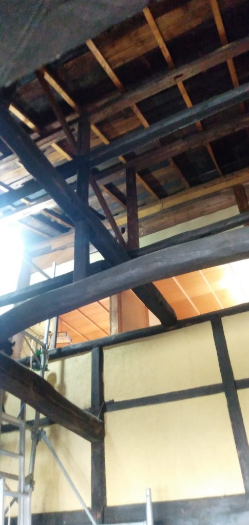 集成材のように真っすぐでない為大工さんの仕事も一苦労ですが、今はレーザーを使って水平を出せ、下地を真っすぐにできるから昔よりは大分便利になったとおっしゃっていました。