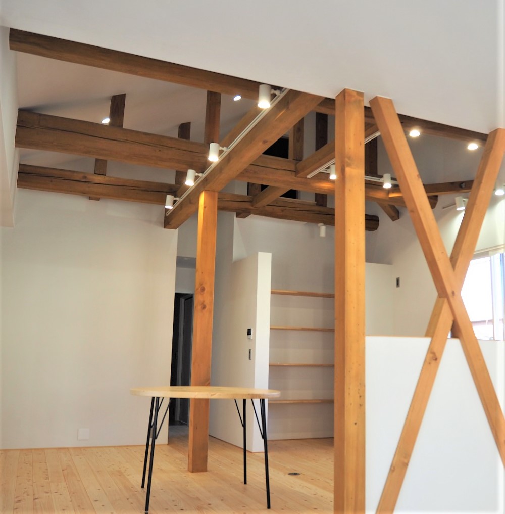 今回は2階の改修でしたので、ダイニングは天井高をぐっと取り、構造材も見せてアクセントに。