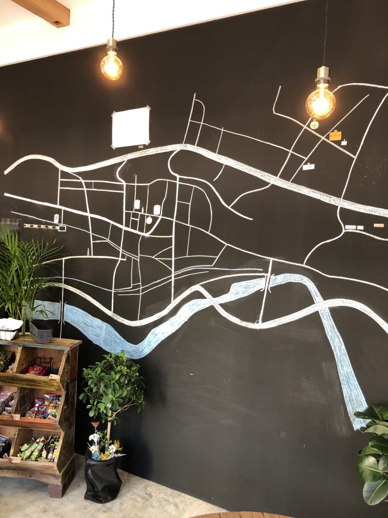 壁一面に鶴来の地図が描いてあって飲食店さんをご紹介してありました。
