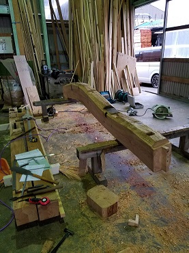 DIARY 2018-06-08 O様邸施工状況 今日はO様邸改築工事のご紹介です。 こちらは150年前に建てられた、歴史あるお住まいの建て替え工事です。 直径30㎝もある地松の梁や24㎝角のケヤキの柱など、大変立派な木材が使用されていました。歴史を経て真っ黒になったそれらの材料。次の世代へバトンされ、また新しい住まいを守り続けてくれるよう、大工がしっかりと加工し生かしていきます。 他にも、杉の板戸も再度利用していく予定ですので、またご紹介させていただきますね♪