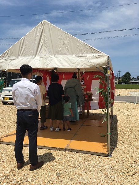 T様ご夫婦のご両親も来てくださり、賑やかな地鎮祭となりました。