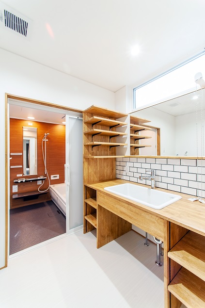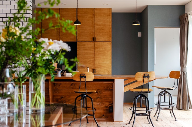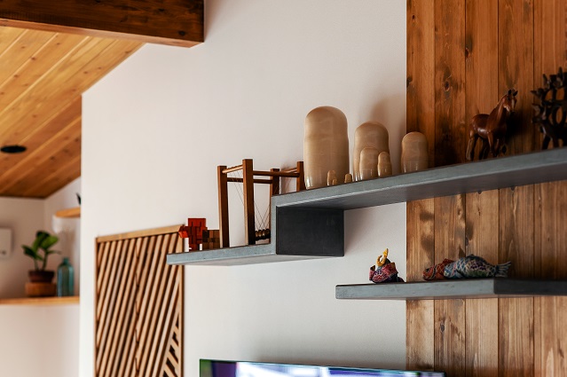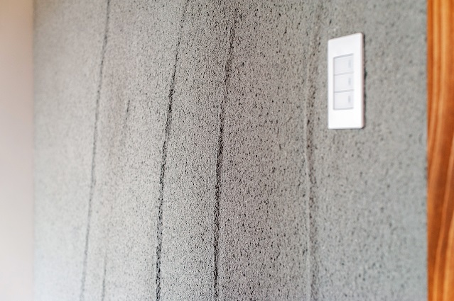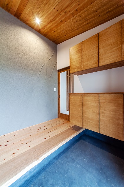 玄関やLDKの壁には、左官材を多く用いました。生活による嫌な臭いや湿気を取ってくれ、仕上げの凹凸により陰影が生まれ空間に奥行きを持たせてくれます。機能とデザインを兼ね備えた材料です。