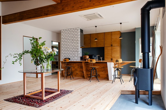床には三重県のヒノキを。この床材は、無垢でありながら、痩せにくく、狂いの少ない材料です。