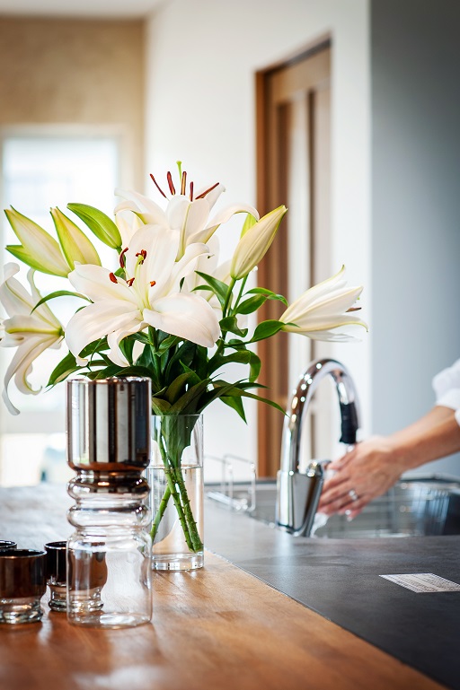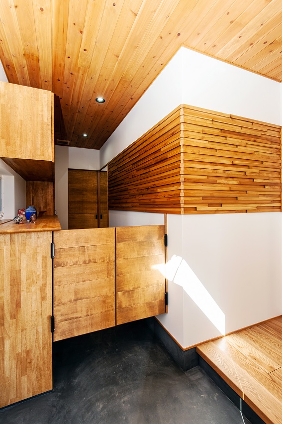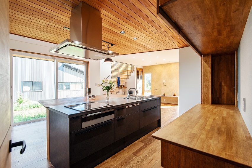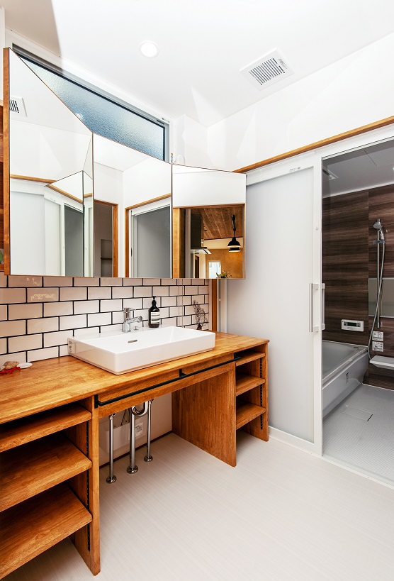 キッチンから、洗面室やサンルーム、家族玄関へも周遊できよう動線にもこだわりました。