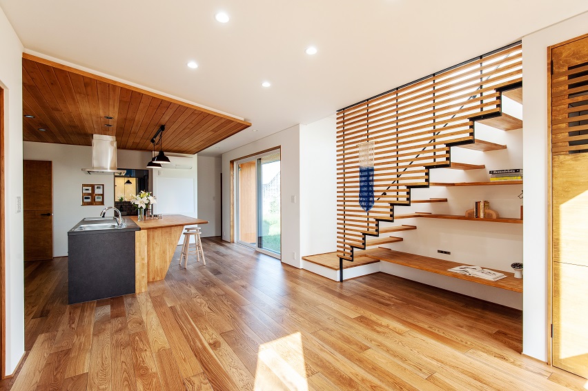 この住まいはZEH対応にプラスして床暖房も採用し、リビング階段でも快適なご様子。