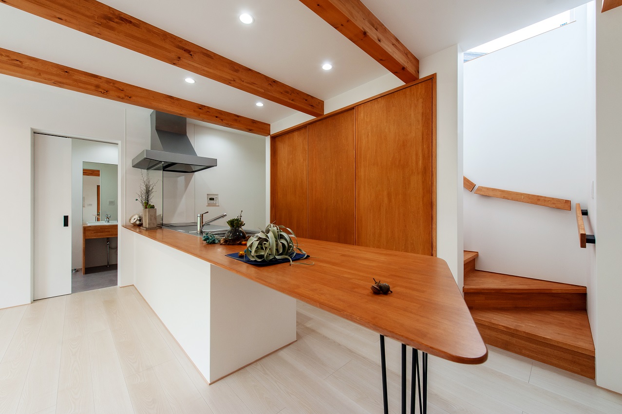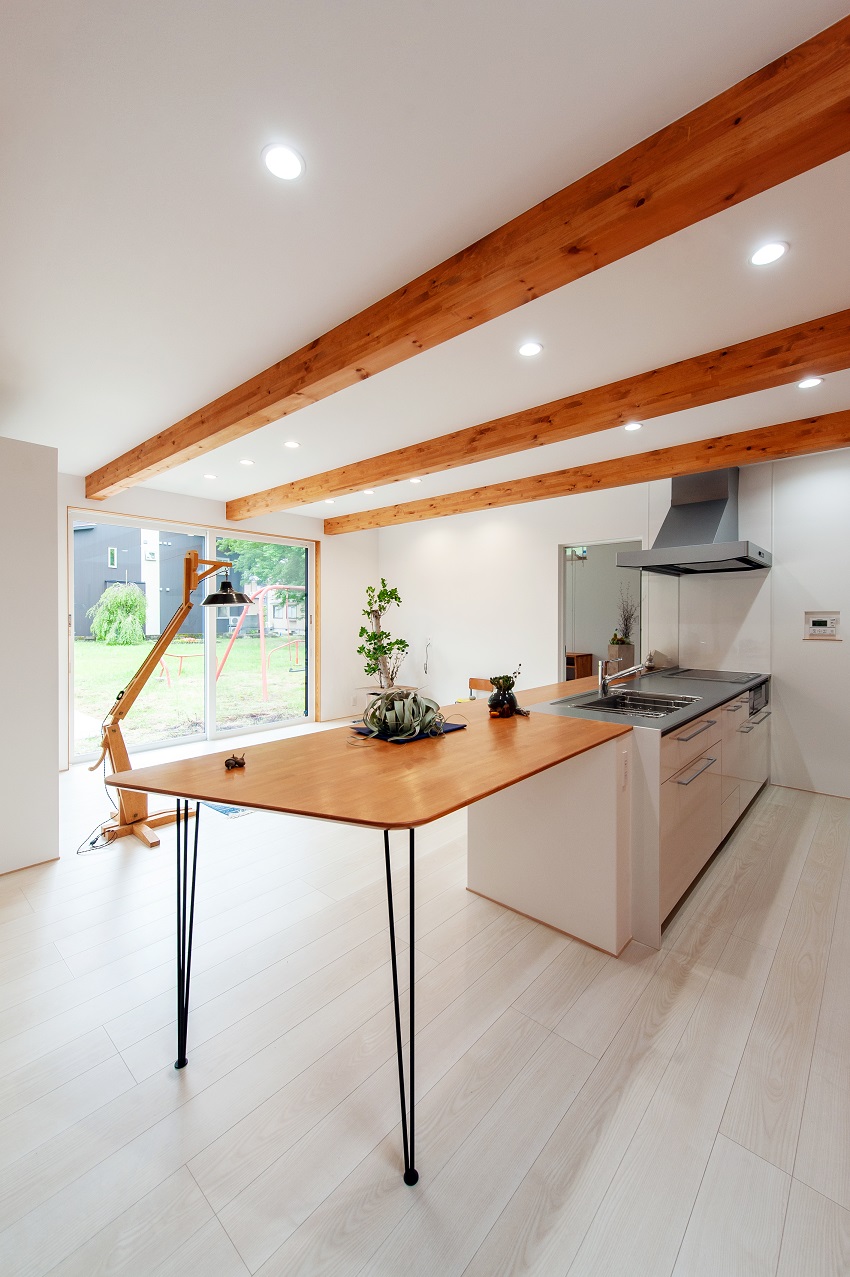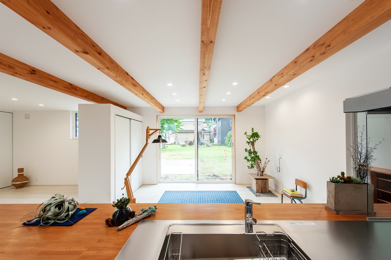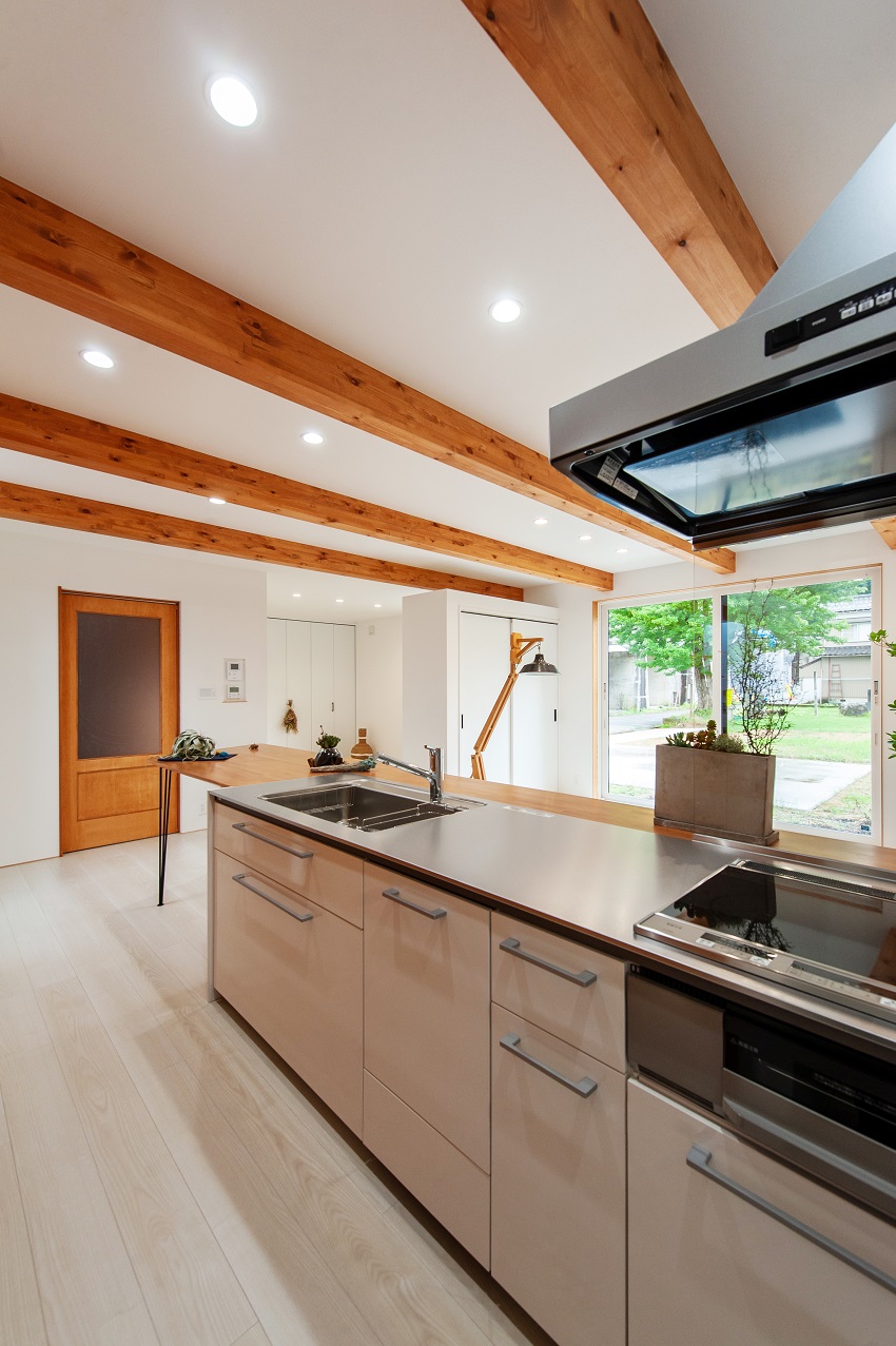 キッチンに立つと正面の大きな窓を介してお隣の公園の広々とした空間が感じられます。