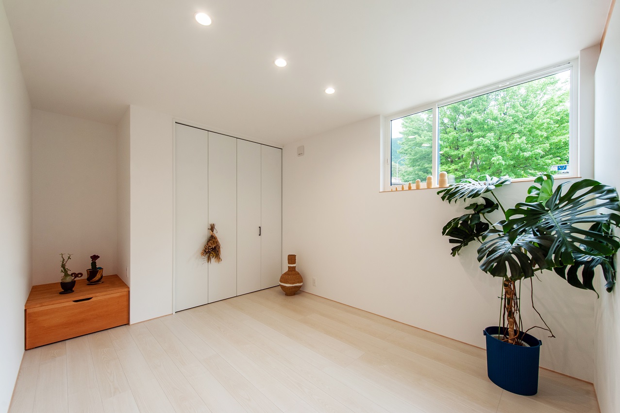 将来必要になった時に簡単に一部屋の個室として利用できるよう、収納で隔てた洋室のスペースを組み込みました。