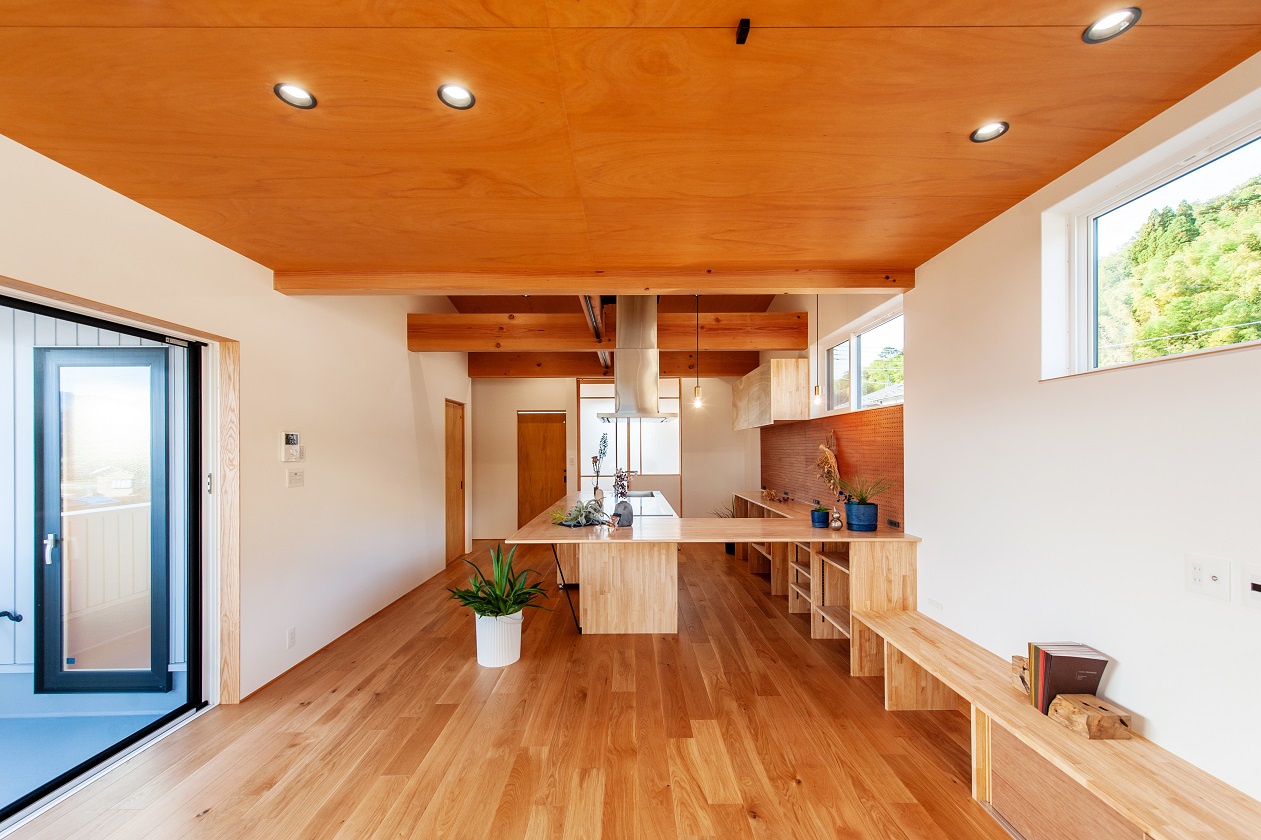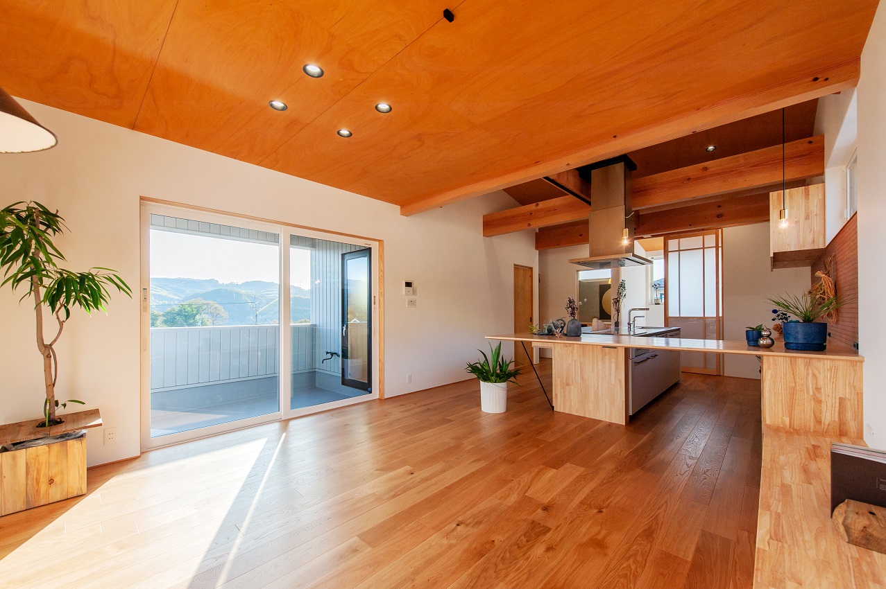 ポイント:リビング、キッチン、自由設計、テラス、自然派素材