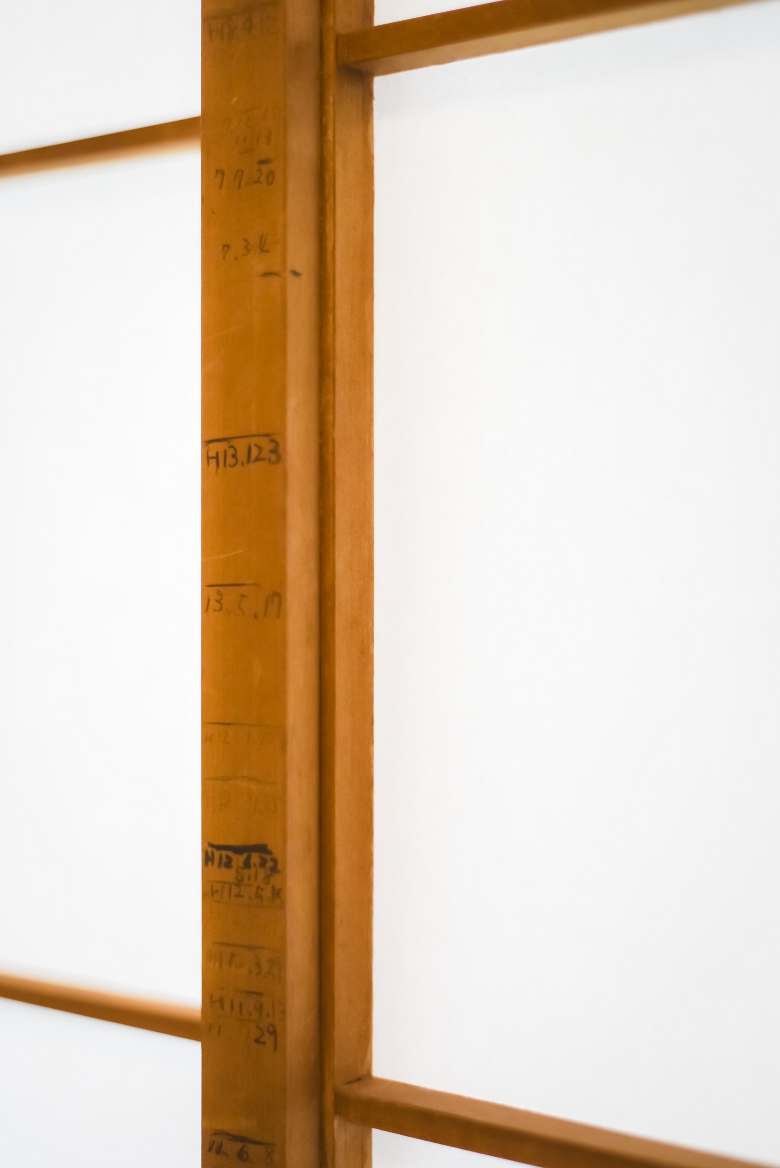 柱や障子等を磨き、調整して新たな空間に配置しました。