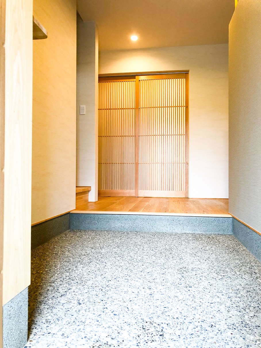 二世帯住宅へ建て替えを行ったこちらのお住まいは、一階を親世帯、二階を子世帯が使用しています。
