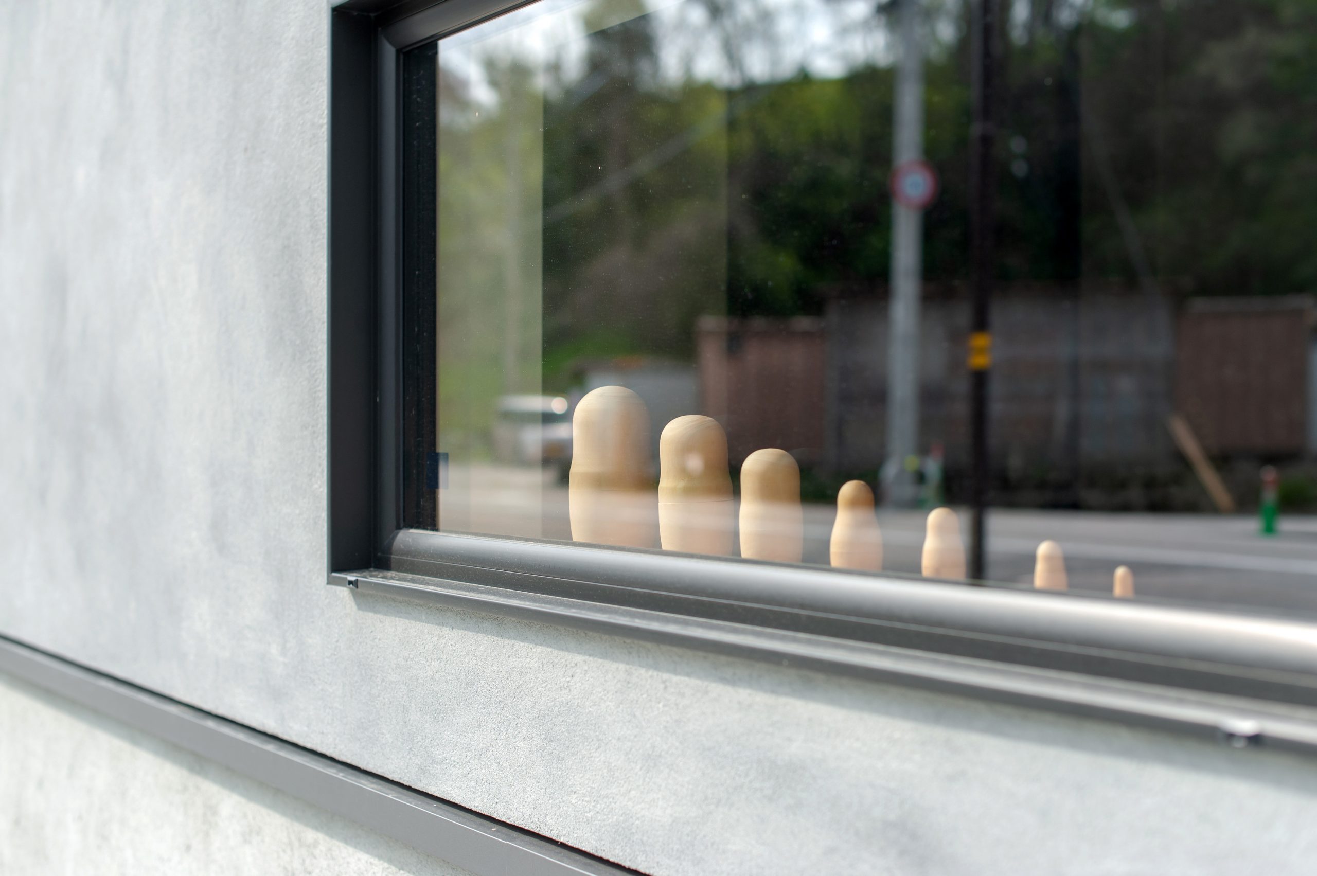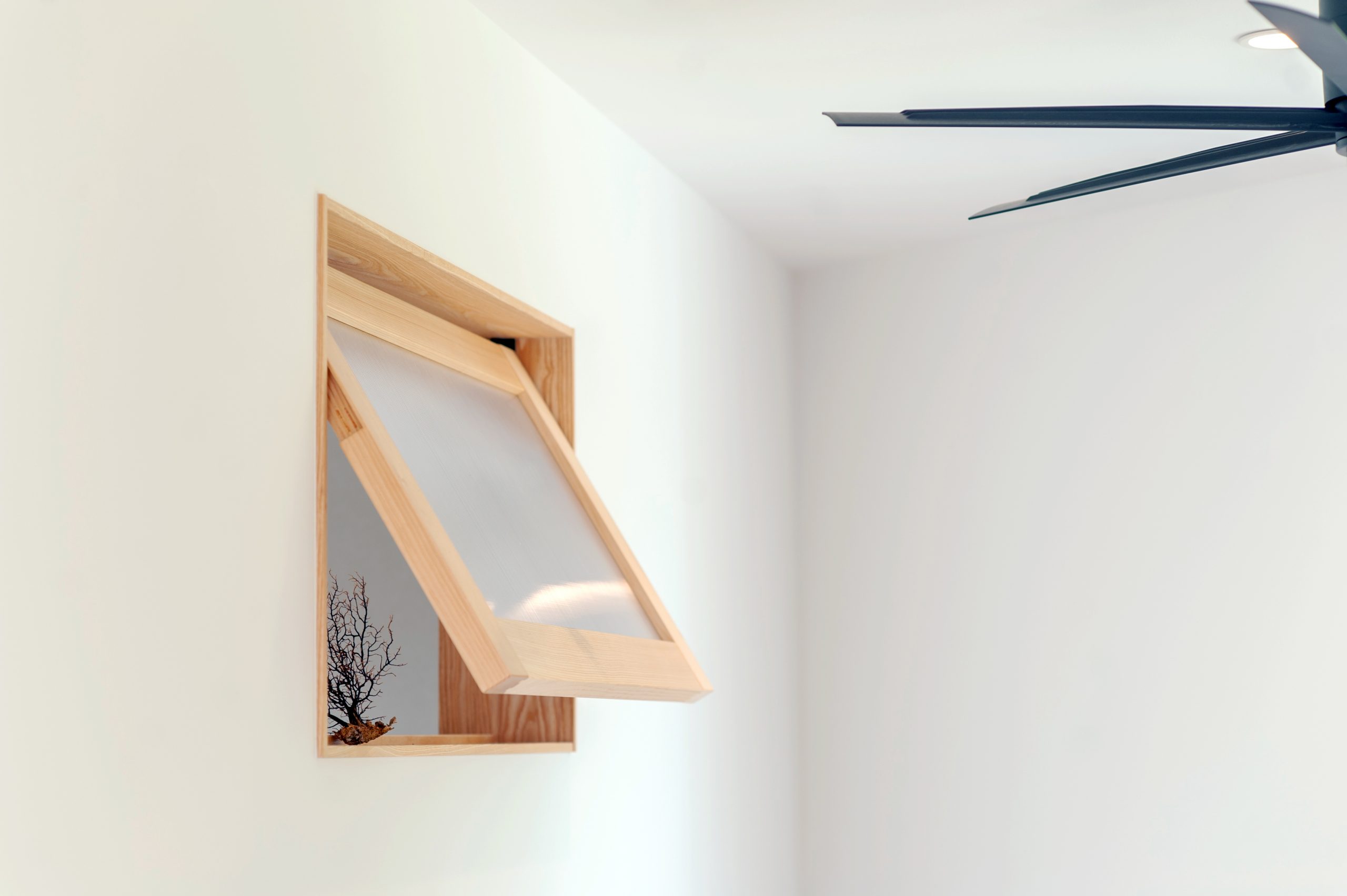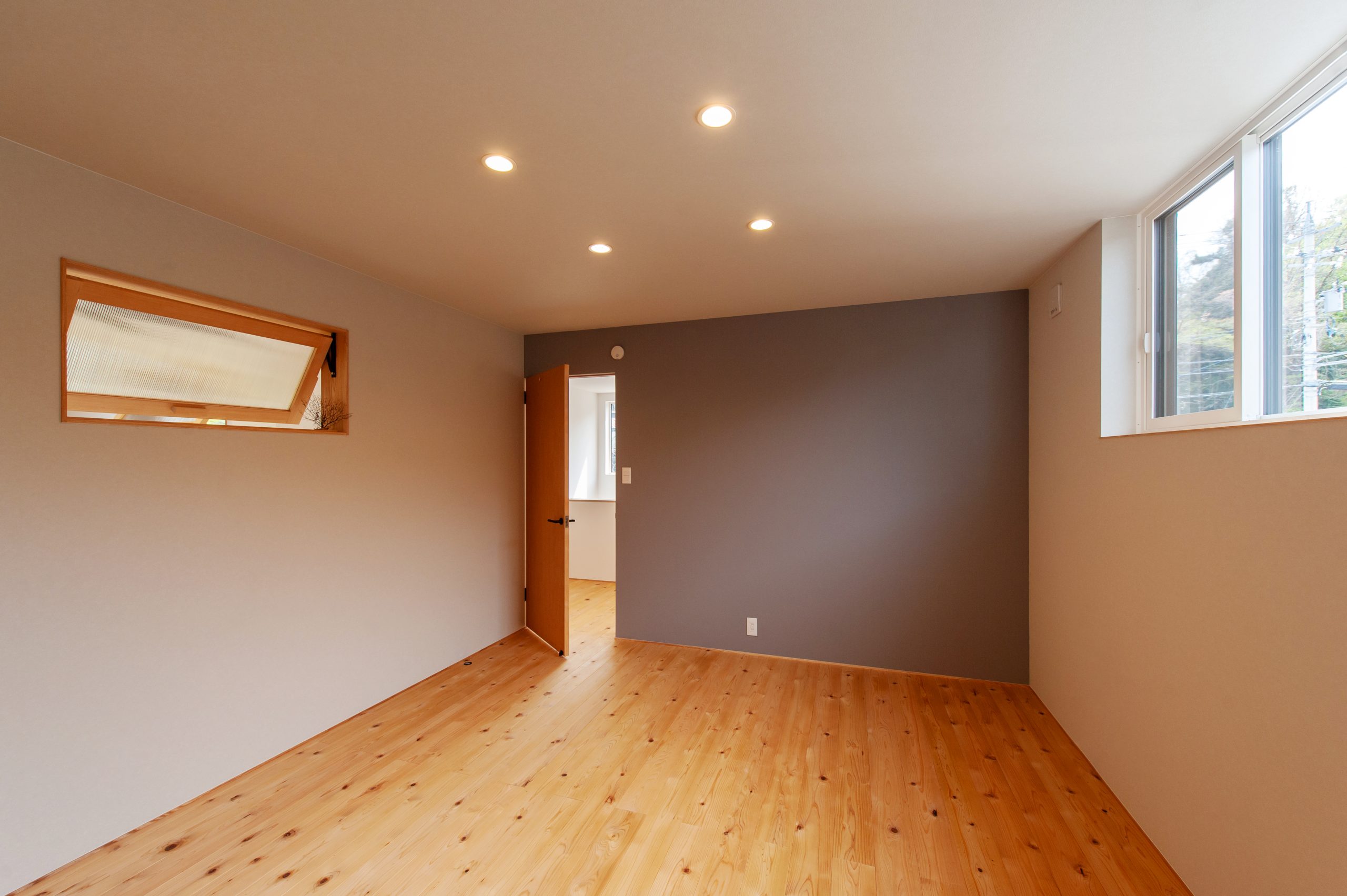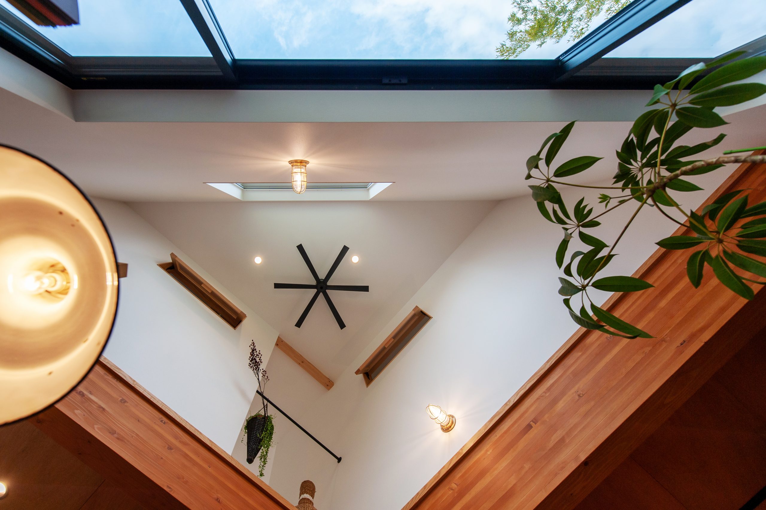 二階の個室には、吹抜けを通してLDKと繋がるように、室内窓を取り付けました。