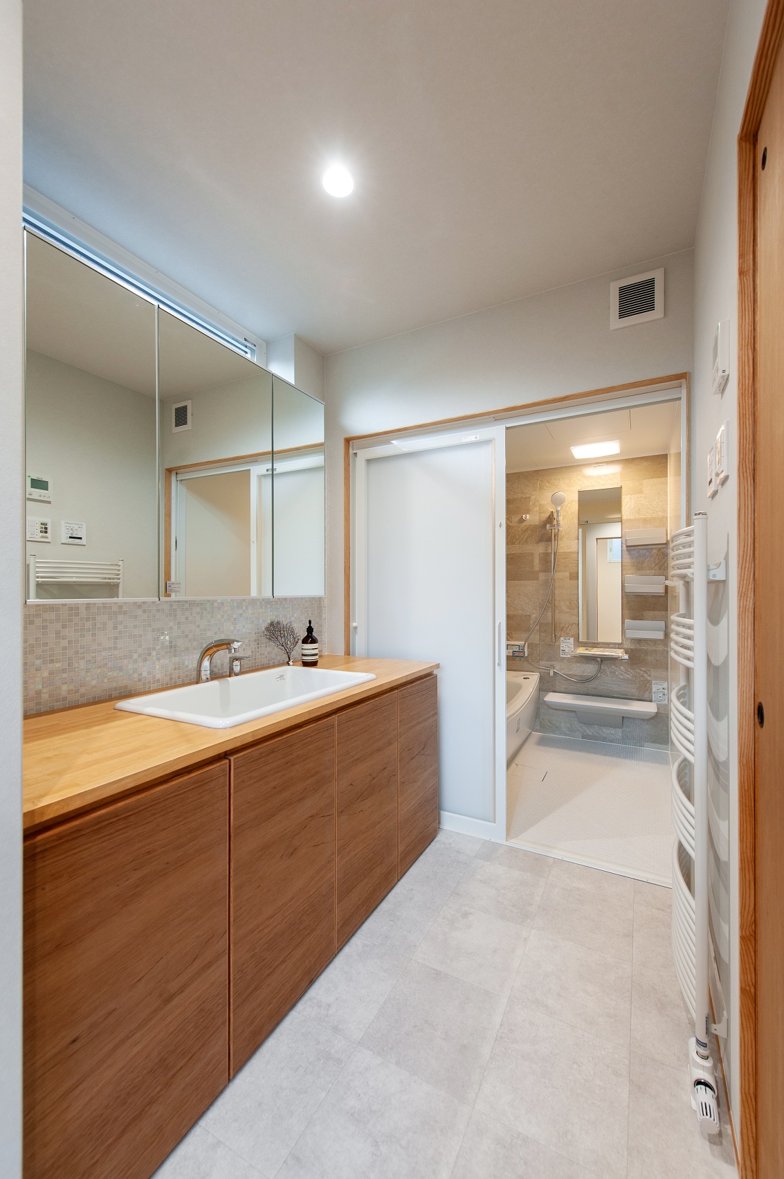勝手口を設けて、外出時・帰宅時の動線に配慮しています。