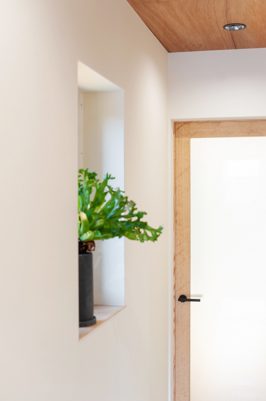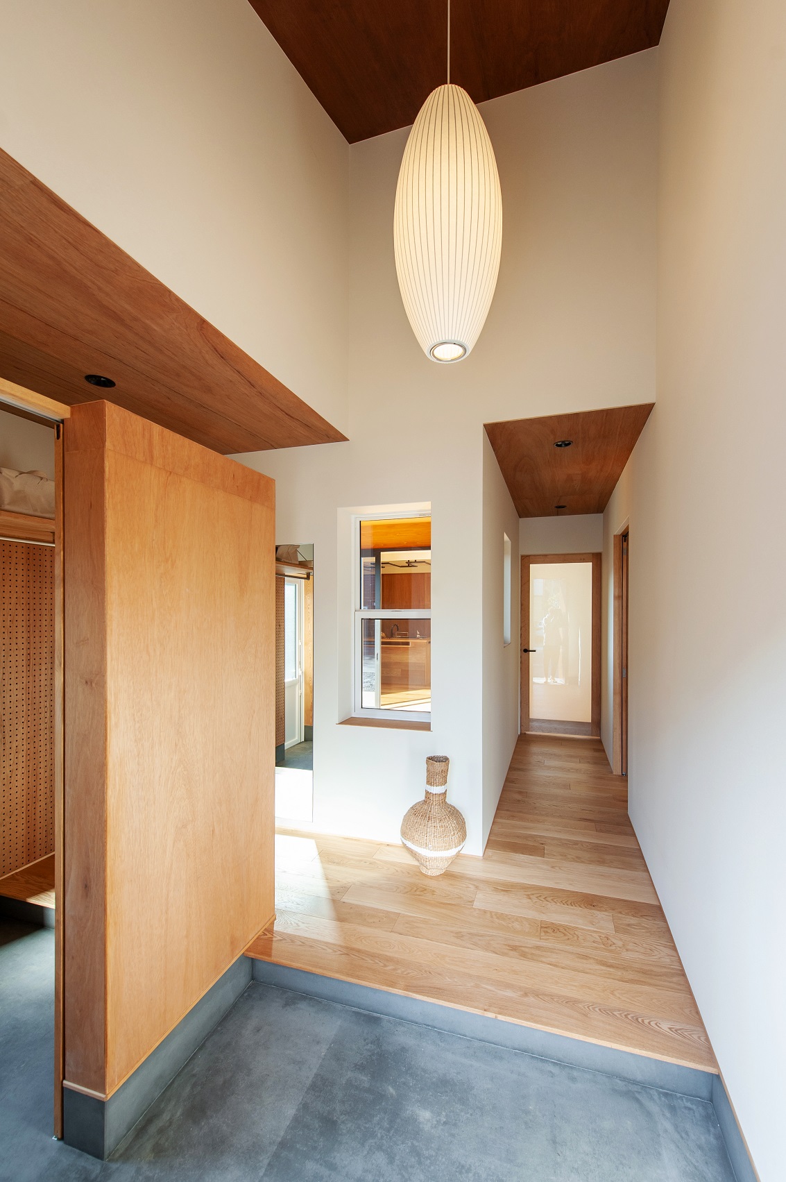 勾配屋根を生かし天井高を高くとった玄関。