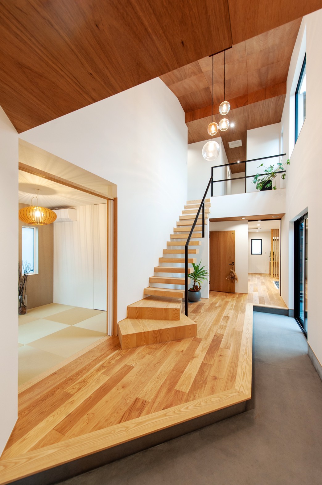 天井も吹き抜けで、玄関がとても開放的です。