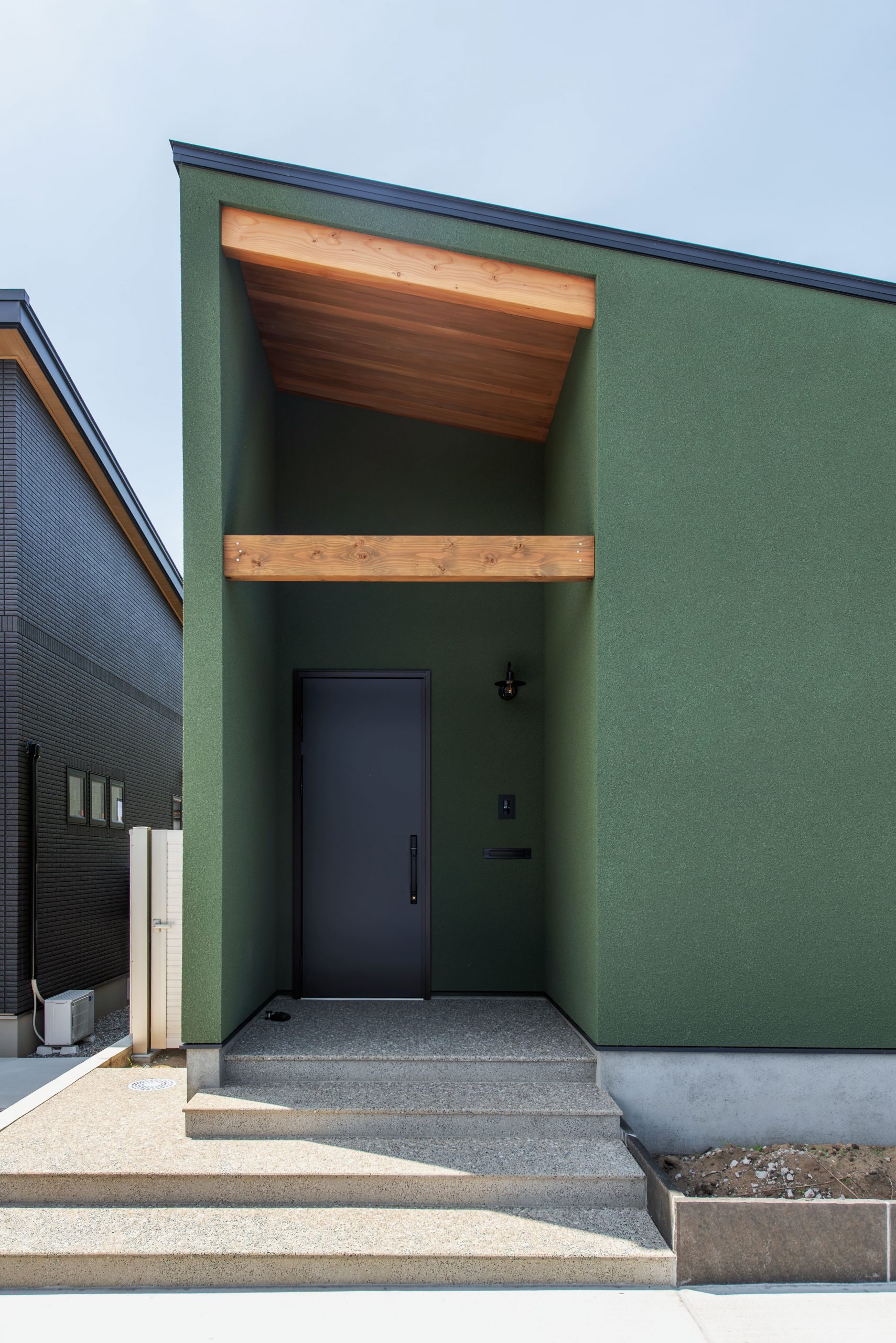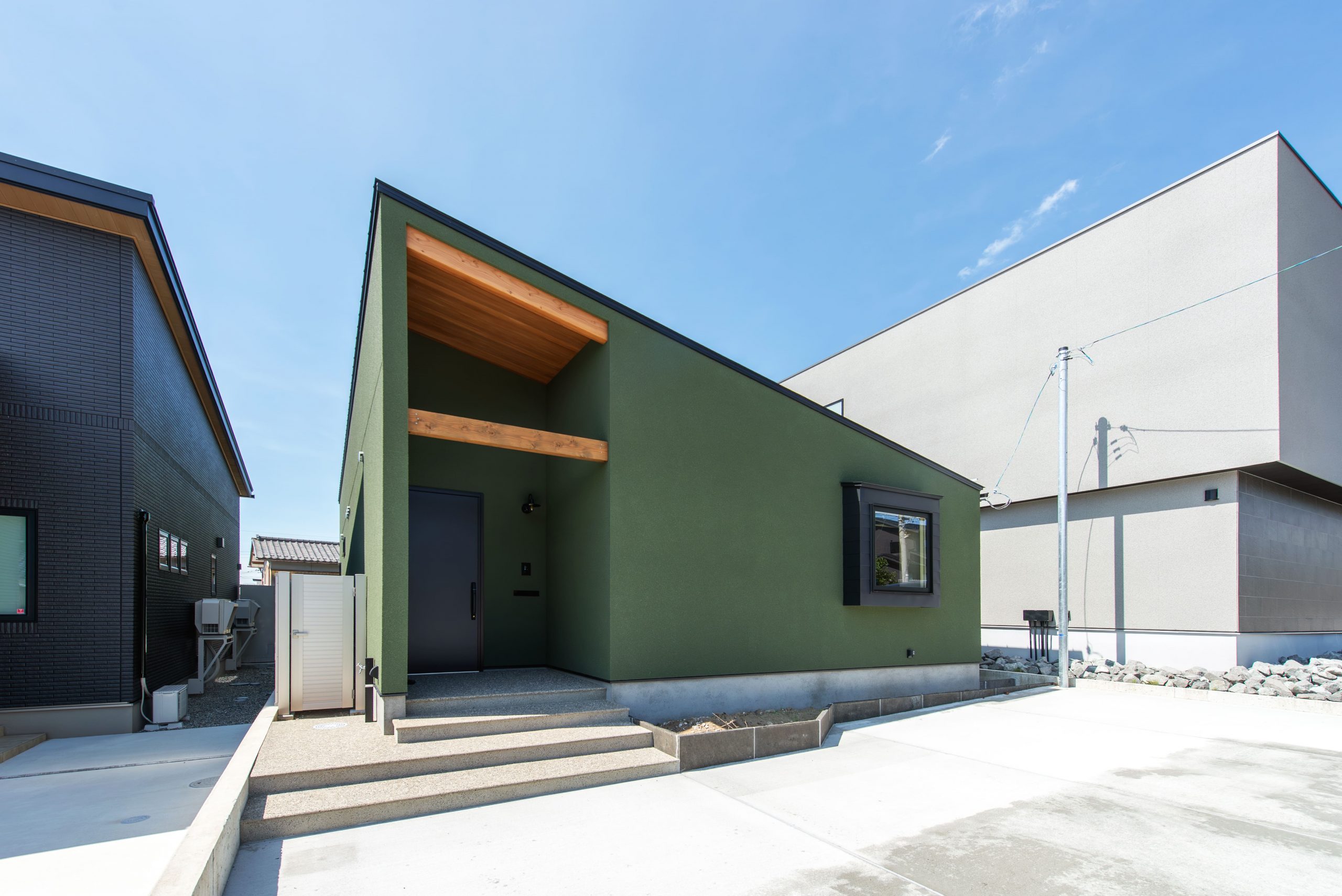 外観の色は奥様が好きな濃い緑にしました。