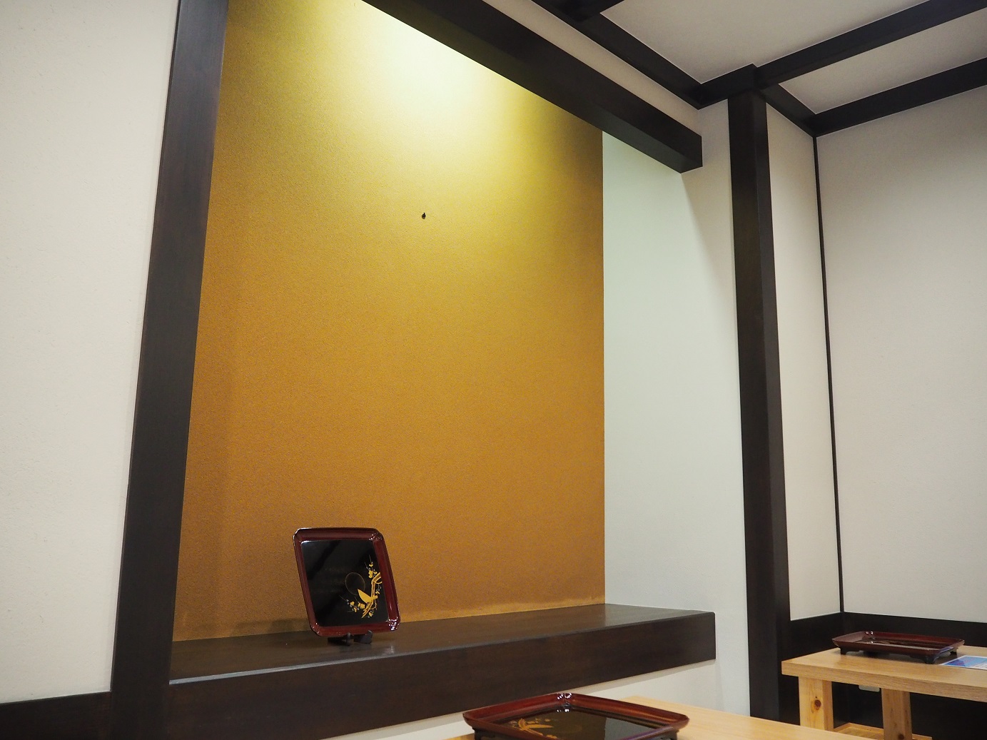 元々の店内にあった金色の塗り壁は、周囲の色味とトータルでデザインし塗り直すことで、より特別な一面を演出しています。