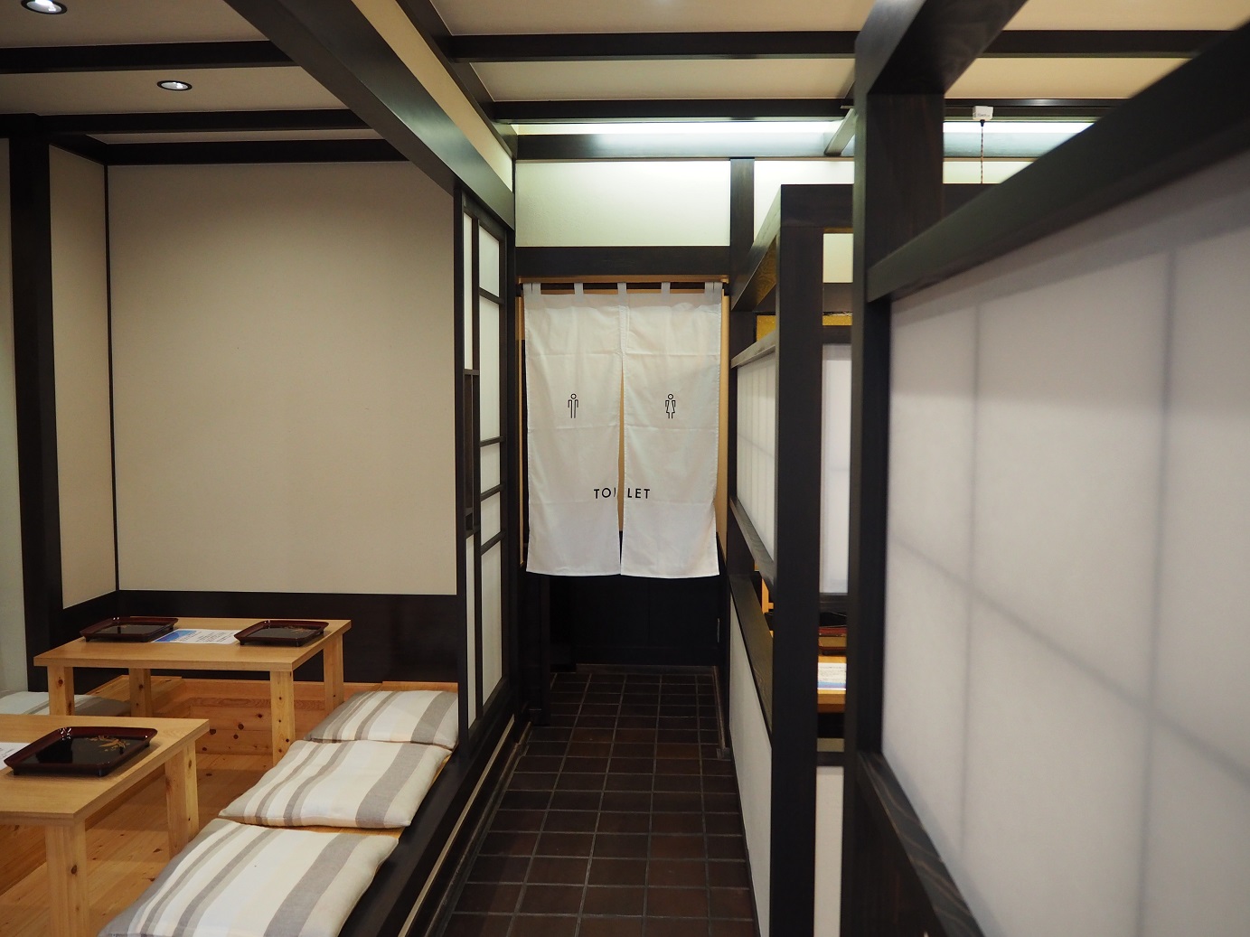 外国のお客様にも多くご利用いただくということで、日本の雰囲気やデザインが伝わればと、間仕切り壁には太鼓張りの障子をあしらっています。