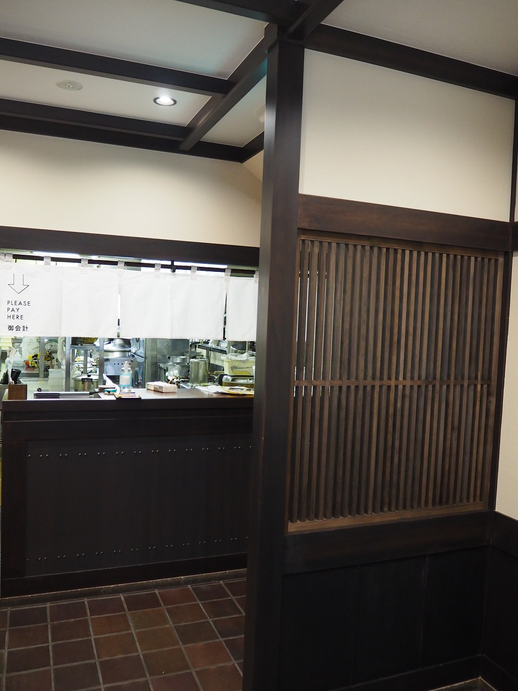 弊社の工事に加え、正面・レジ・お手洗い前にウーブンナックさんデザインの暖簾を掛けています。